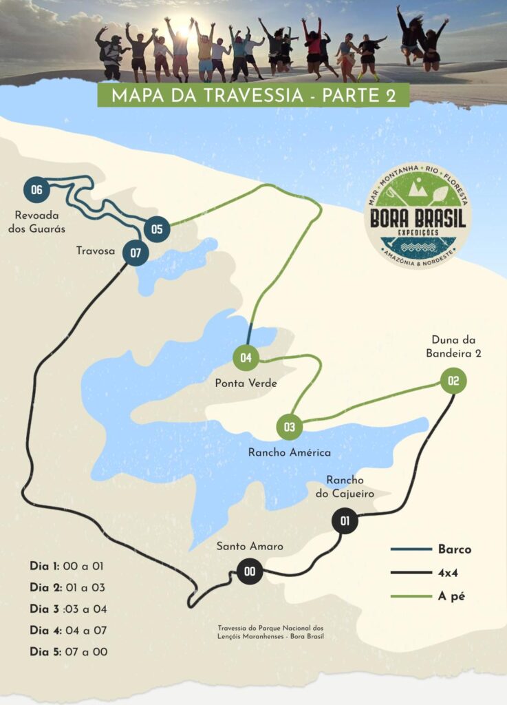 Prepare-se para uma aventura extraordinária nos Lençóis Maranhenses! Em cinco dias intensos, sendo três de trekking, você conhecerá regiões inexploradas do Parque Nacional, descobrindo as fascinantes comunidades do Cajueiro, América, Ponta Verde e Travosa.